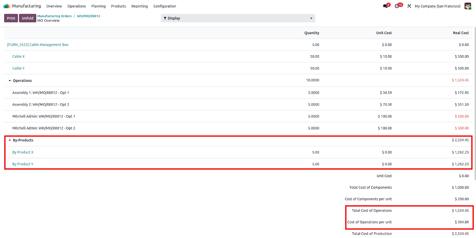 Cost Allocation Between Main Products and By-Products in Odoo Manufacturing